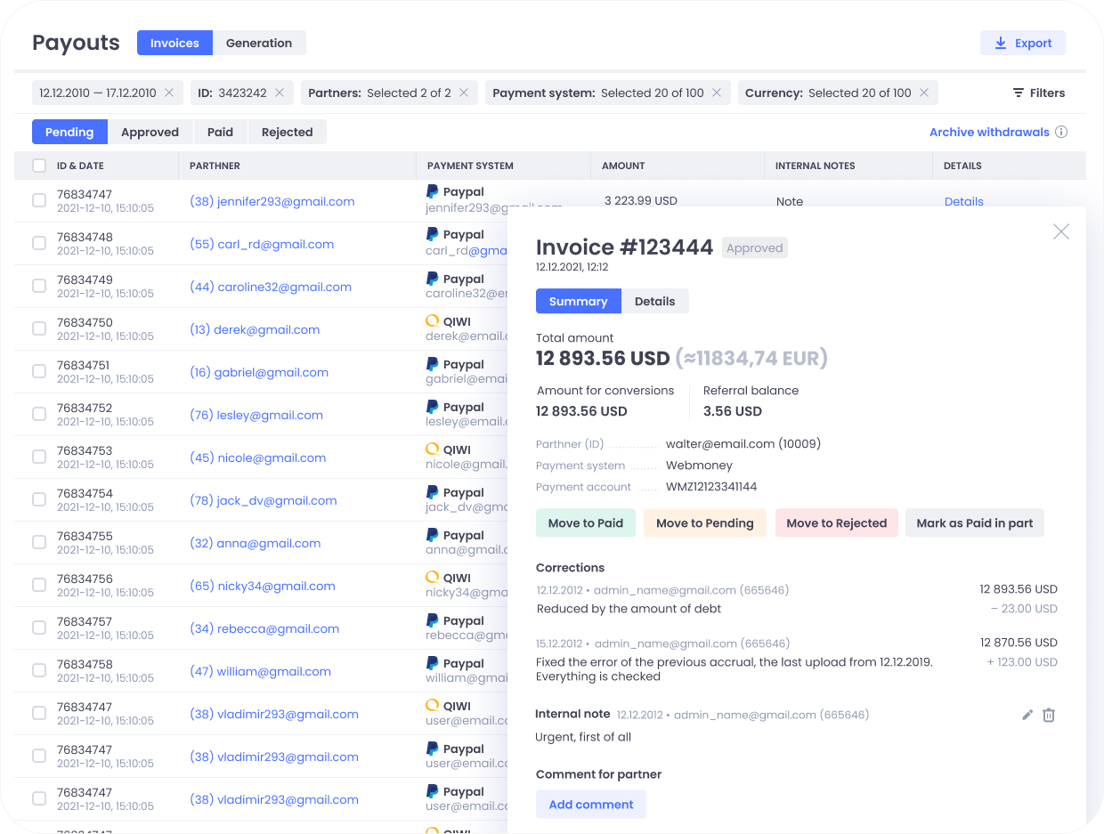 Account work is one of the main tools when working with a CPA network. That's why we made it so comfortable and with great functionality.