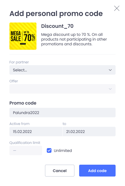 You and your partners will be able to use promo codes to drive traffic.